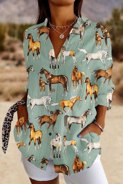 Stay on trend this season in our new casual, shirt collar shirt. We especially love the graphic print fabric and think this piece will be a new favorite in your closet!