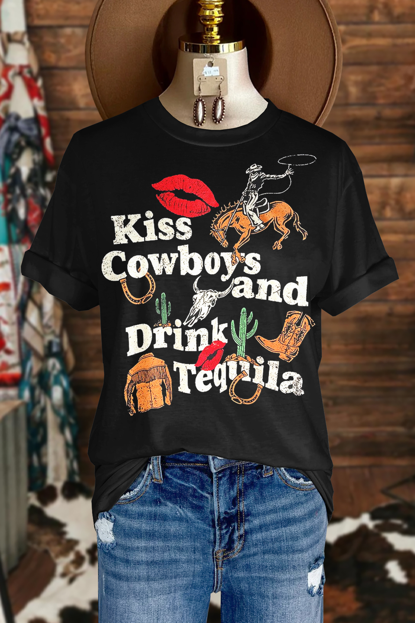 Western Kiss Cowboys Print Short Sleeve T-Shirt