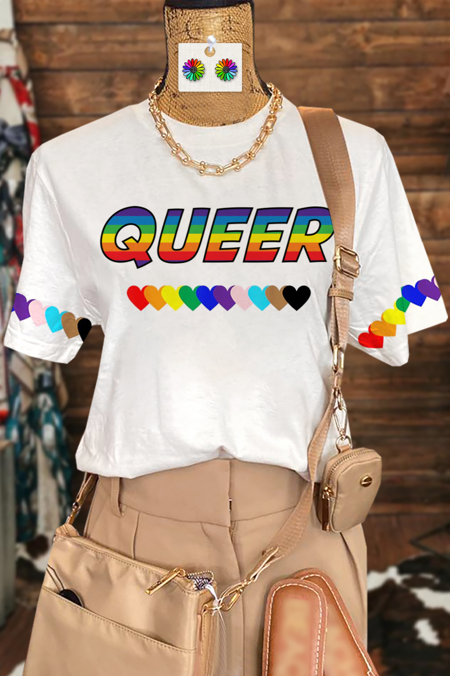 Stay on trend this season in our new classic, round neck t-shirt. We especially love the graphic print fabric and think this piece will be a new favorite in your closet!