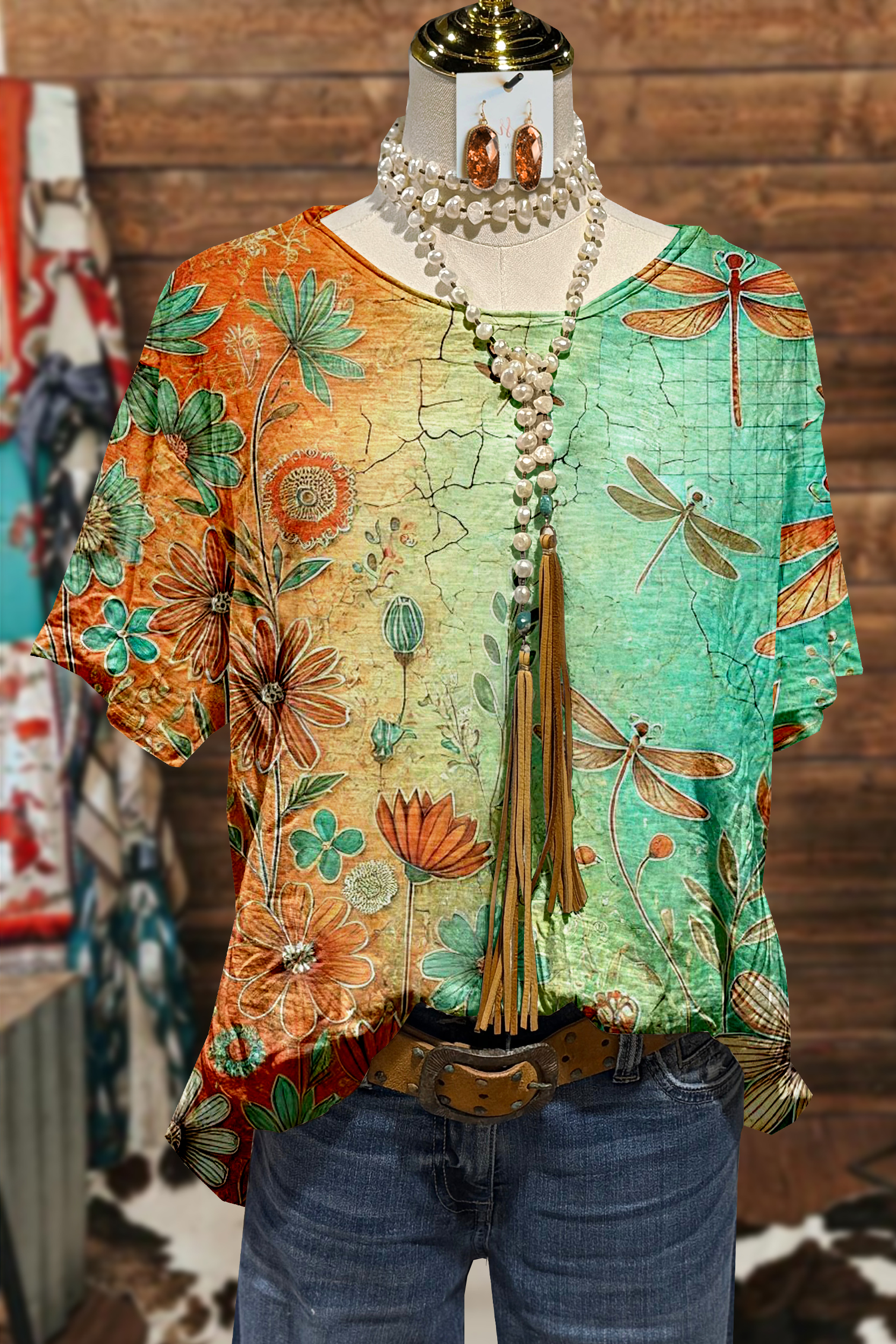Vintage Dragonfly Print T-Shirt
