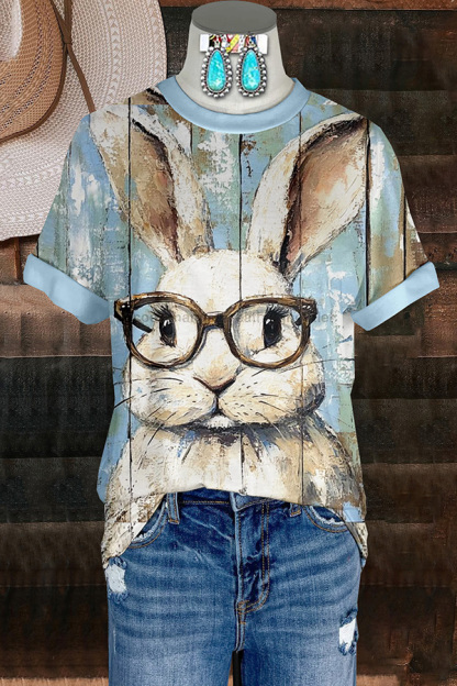 Vintage Easter Bunny Print T-Shirt