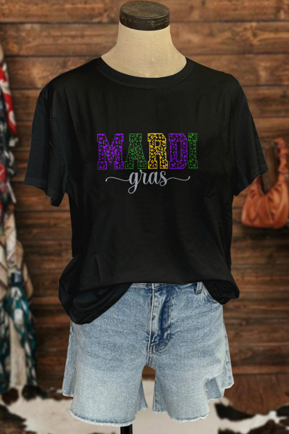 Classic Mardi Gras Lettering Print T-Shirt