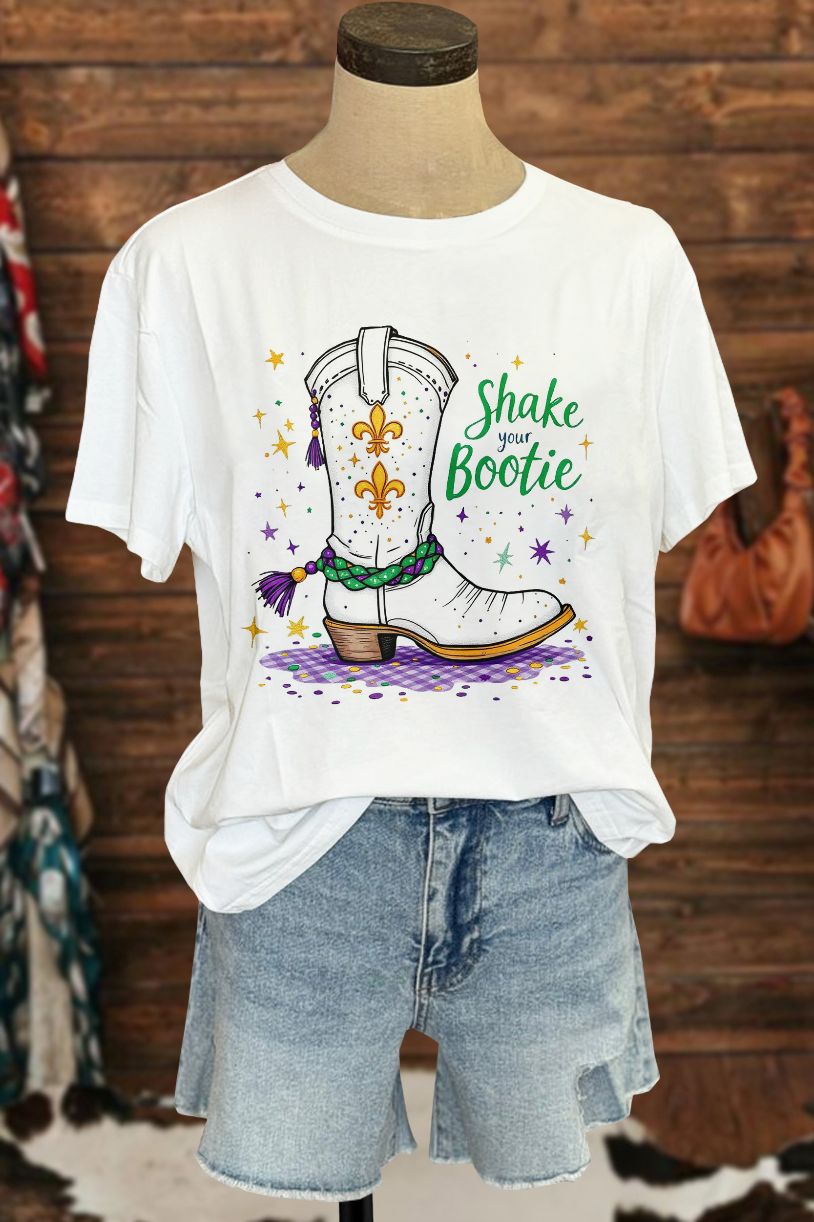 Unique Mardi Gras Cowboy Boot Print T-Shirt