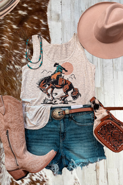 Stay on trend this season in our new casual, round neck Tank. We especially love the graphic print fabric and think this piece will be a new favorite in your closet!