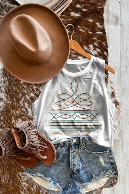Vintage Western Stitched Boots Print Tank