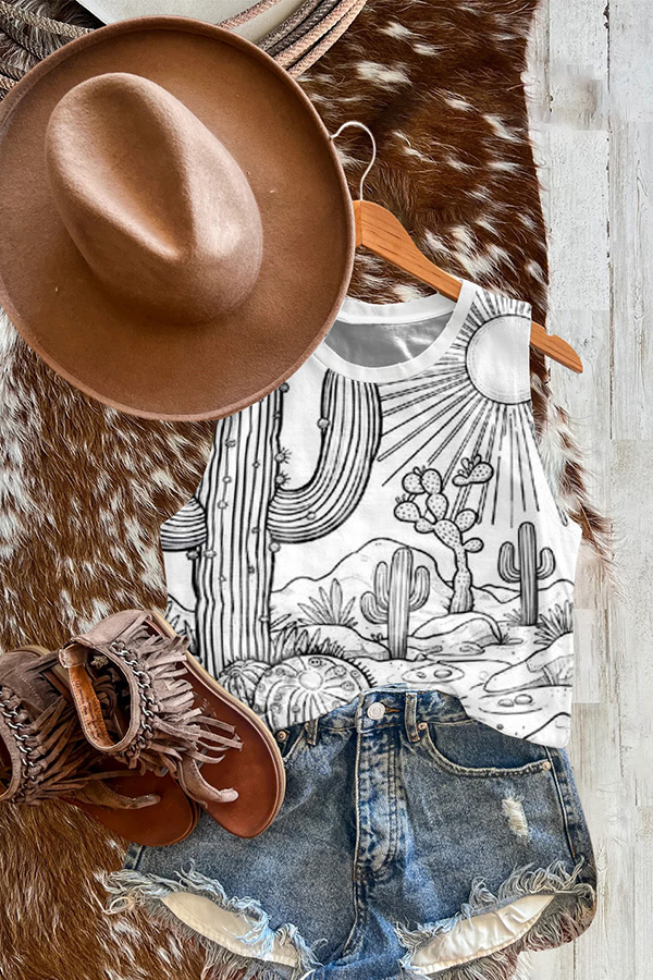 Vintage Western Cactus Print Vest