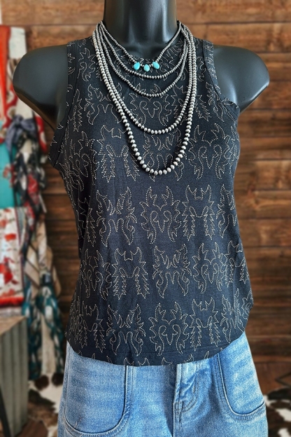 Stay on trend this season in our new casual, round neck Tank. We especially love the graphic print fabric and think this piece will be a new favorite in your closet!