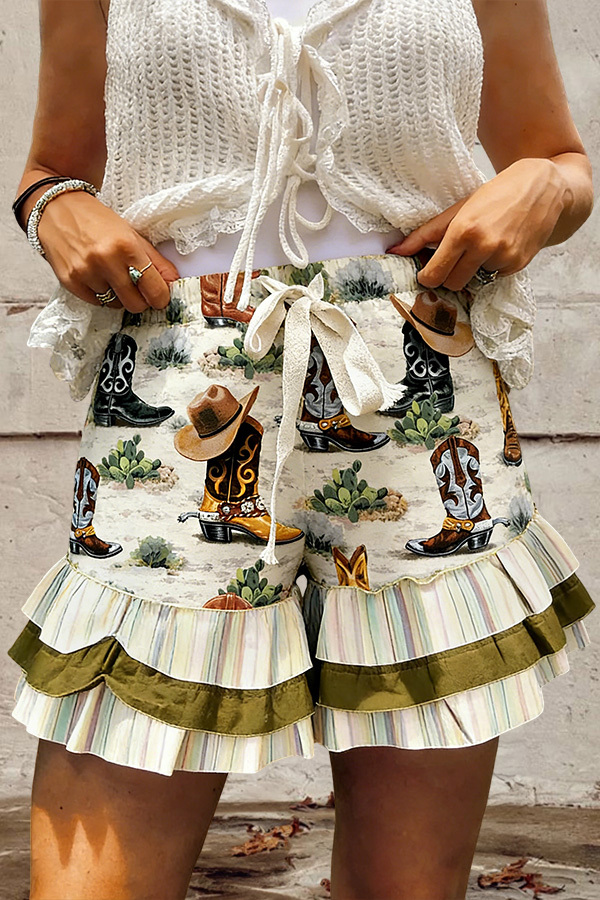 Western Ranch Layered Ruffle Drawstring Shorts