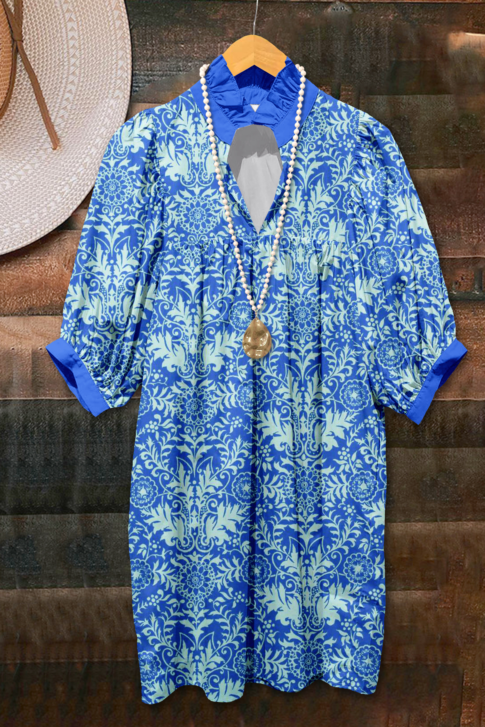 Stay on trend this season in our new retro, v neck dress. We especially love the leaf print fabric and think this piece will be a new favorite in your closet!