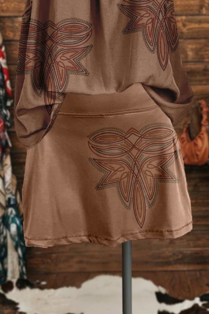 Retro Western Tribal Stitch Print Skirt