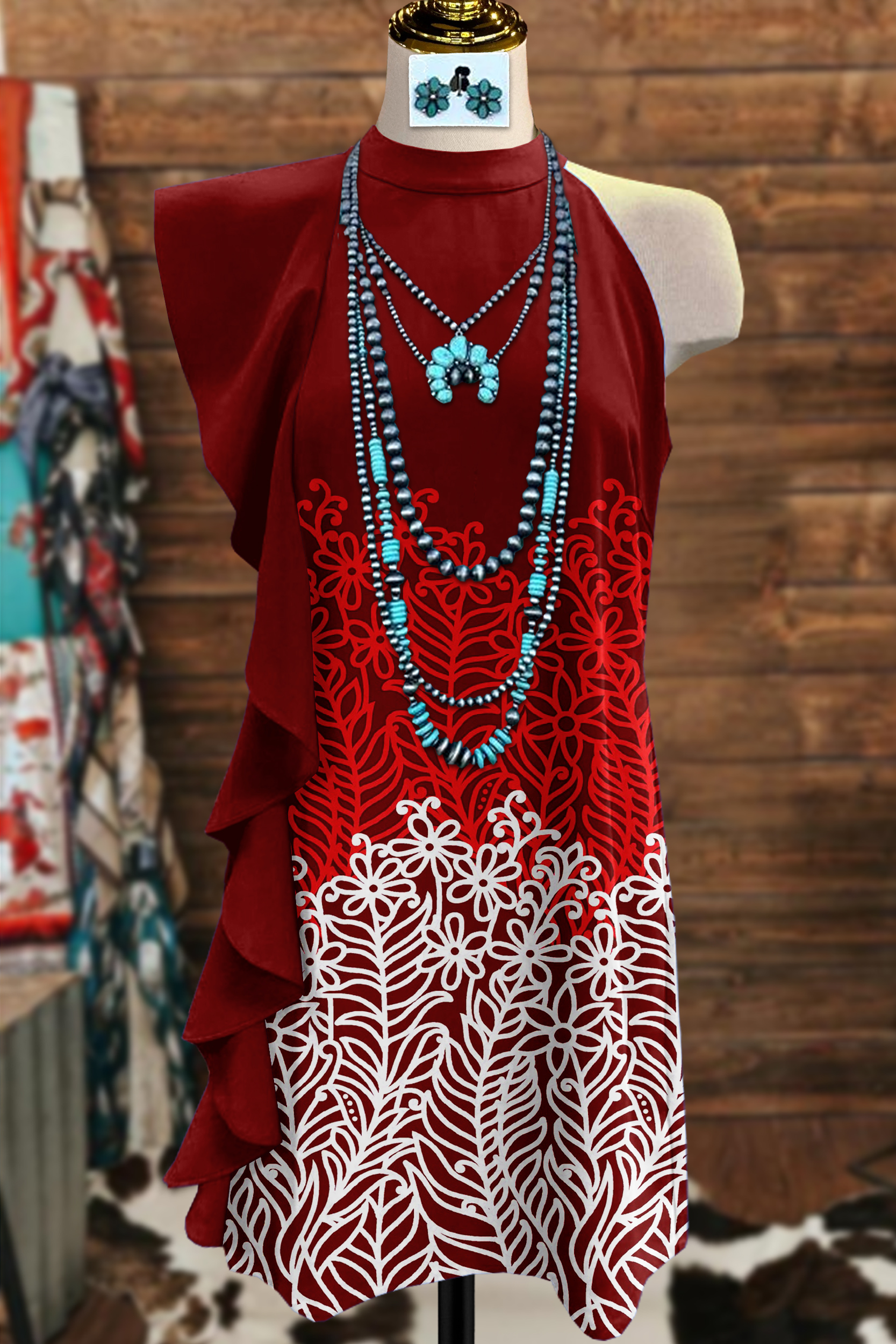 Classic Print Asymmetric Ruffle Dress